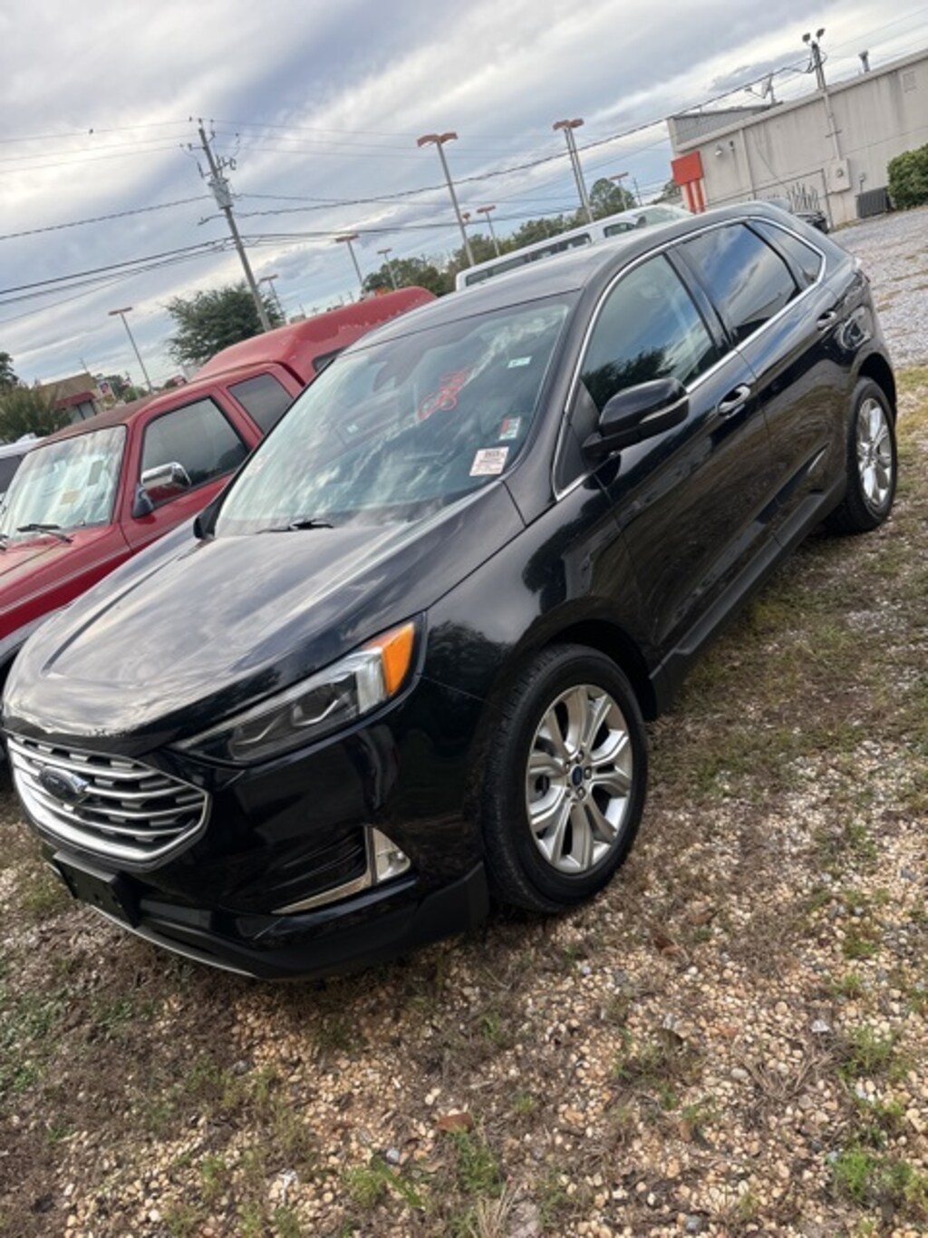 AWD, 12 Speakers, 3.80 Axle Ratio, 4-Wheel Disc Brakes, ABS brakes, Adaptive Cruise Control w/Stop & Go, Adaptive LED Headlamps, Air Conditioning, Alloy wheels, AM/FM radio: SiriusXM with 360L, Auto High-beam Headlights, Auto-Dimming Driver's Sideview Mirror, Auto-dimming Rear-View mirror, Automatic temperature control, Brake assist, Bumpers: body-color, Compass, Connected Built-In Navigation, Delay-off headlights, Driver door bin, Driver vanity mirror, Dual front impact airbags, Dual front side impact airbags, Electronic Stability Control, Emergency communication system: SYNC 4 911 Assist, Equipment Group 301A, Evasive Steering Assist, FordPass Connect, Four wheel independent suspension, Front 180-Degree Camera w/Split View, Front anti-roll bar, Front Bucket Seats, Front Center Armrest w/Storage, Front dual zone A/C, Front fog lights, Front License Plate Bracket, Front reading lights, Fully automatic headlights, Garage door transmitter, Heated door mirrors, Heated front seats, Heated Rear Seats, Heated steering wheel, Illuminated entry, Knee airbag, Lane Centering, Leather-Trimmed Heated Sport Bucket Seats, Leather-Trimmed Heated/Cooled Sport Bucket Seats, Low tire pressure warning, Memory seat, Occupant sensing airbag, Outside temperature display, Overhead airbag, Overhead console, Panic alarm, Passenger door bin, Passenger vanity mirror, Power door mirrors, Power driver seat, Power Liftgate, Power passenger seat, Power steering, Power Tilt/Telescoping Steering Column w/Memory, Power windows, Radio: B&O Sound System by Bang & Olufsen, Rain sensing wipers, Rear anti-roll bar, Rear reading lights, Rear seat center armrest, Rear window defroster, Rear window wiper, Remote keyless entry, Security system, SiriusXM w/360L, Speed control, Speed-Sensitive Wipers, Split folding rear seat, Spoiler, Steering wheel mounted audio controls, SYNC 4A w/Enhanced Voice Recognition, Tachometer, Telescoping steering wheel, Tilt steering wheel, Traction control, Trip computer, Turn signal indicator mirrors, Variably intermittent wipers, Wheels: 19" Luster Nickel-Painted Aluminum, AWD. 4D Sport Utility 2022 Ford Titanium 21/28 City/Highway MPG 2022 Ford Edge Titanium EcoBoost 2.0L I4 GTDi DOHC Turbocharged VCT 8-Speed Automatic Edge AWD Welcome to Budget Car & Truck Sales, where we invite you to experience the difference our knowledgeable staff can make for you! We are committed to providing a high level of customer service while operating our business with integrity and professionalism and we look forward to forging a long lasting business relationship with you! Ever since our humble 1992 beginnings we have put our customer's needs first and will continue to do so as we proudly serve our customers. Black Metallic 21/28 City/Highway MPG