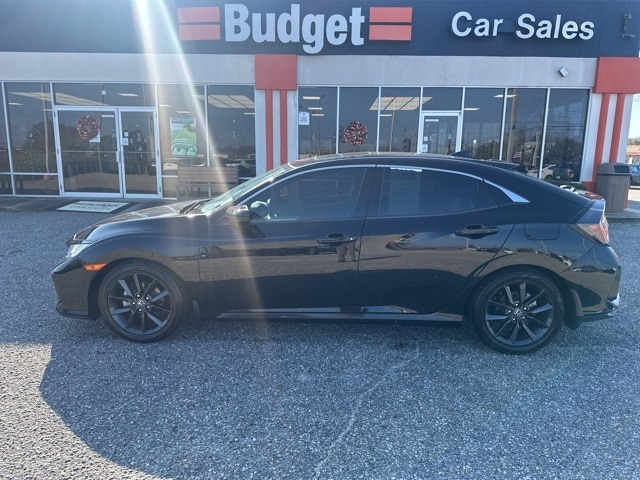 Cloth, 4-Wheel Disc Brakes, 8 Speakers, ABS brakes, Adaptive Cruise Control: Adaptive Cruise Control (ACC) with Low-Speed Follow, Air Conditioning, Alloy wheels, AM/FM radio: SiriusXM, Apple CarPlay/Android Auto, Auto High-beam Headlights, Automatic temperature control, Brake assist, Bumpers: body-color, Delay-off headlights, Driver door bin, Driver vanity mirror, Dual front impact airbags, Dual front side impact airbags, Electronic Stability Control, Emergency communication system: HondaLink, Exterior Parking Camera Rear, Fabric Seating Surfaces, Forward collision: Collision Mitigation Braking System (CMBS) + FCW mitigation, Four wheel independent suspension, Front anti-roll bar, Front Bucket Seats, Front Center Armrest, Front dual zone A/C, Front fog lights, Front reading lights, Fully automatic headlights, Heated door mirrors, Illuminated entry, Lane departure: Lane Keeping Assist System (LKAS) active, Leather Shift Knob, Low tire pressure warning, Occupant sensing airbag, Outside temperature display, Overhead airbag, Overhead console, Panic alarm, Passenger door bin, Passenger vanity mirror, Power door mirrors, Power driver seat, Power moonroof, Power steering, Power windows, Radio data system, Radio: 180-Watt HD Audio System, Rear anti-roll bar, Rear seat center armrest, Rear window defroster, Rear window wiper, Reclining Front Bucket Seats, Remote keyless entry, Security system, Speed control, Speed-sensing steering, Split folding rear seat, Spoiler, Steering wheel mounted audio controls, Tachometer, Telescoping steering wheel, Tilt steering wheel, Traction control, Trip computer, Variably intermittent wipers, Cloth. 4D Hatchback 2020 Honda EX 31/40 City/Highway MPG 2020 Honda Civic EX 1.5L I4 DOHC 16V CVT Civic FWD Welcome to Budget Car & Truck Sales, where we invite you to experience the difference our knowledgeable staff can make for you! We are committed to providing a high level of customer service while operating our business with integrity and professionalism and we look forward to forging a long lasting business relationship with you! Ever since our humble 1992 beginnings we have put our customer's needs first and will continue to do so as we proudly serve our customers. Black 31/40 City/Highway MPG