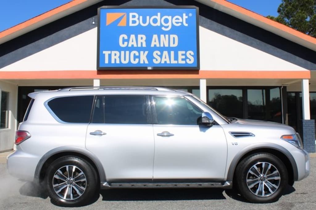 4WD. Odometer is 16626 miles below market average! 4D Sport Utility 2020 13/18 City/Highway MPG 2020 Nissan Armada SL Nissan SL 5.6L V8 7-Speed Automatic Armada 4WD Welcome to Budget Car & Truck Sales, where we invite you to experience the difference our knowledgeable staff can make for you! We are committed to providing a high level of customer service while operating our business with integrity and professionalism and we look forward to forging a long lasting business relationship with you! Ever since our humble 1992 beginnings we have put our customer's needs first and will continue to do so as we proudly serve our customers. *All vehicle pricing shown is assumed to be correct and accurate. Unless otherwise noted or specified, pricing shown does not include tax, tag, title, registration, license, document fees or any dealer installed Accessories. Price subject to change. Additionally, incentives offered by any manufacturer are subject to change and may fluctuate or differ based on region and other considerations. Credit restrictions, qualifying programs, residency, and fees may raise, lower, or otherwise augment monthly payments. Offers cannot be combined. Not valid on prior purchase. In some cases may need to finance with Capital One â" Vehicle information, as well as features and other inclusions, may vary by model and are based exclusively on standard equipment. No claims, warranties, or guarantees have been made related to the accuracy of customer payments, model equipment, or vehicle pricing. Please call with any questions you might have and to reassert the accuracy of any information presented here.*To ensure Budget 1Price, print and present upon arrival or call to secure your savings, speak with our Director at (706) 327-6888. Brilliant Silver Metallic