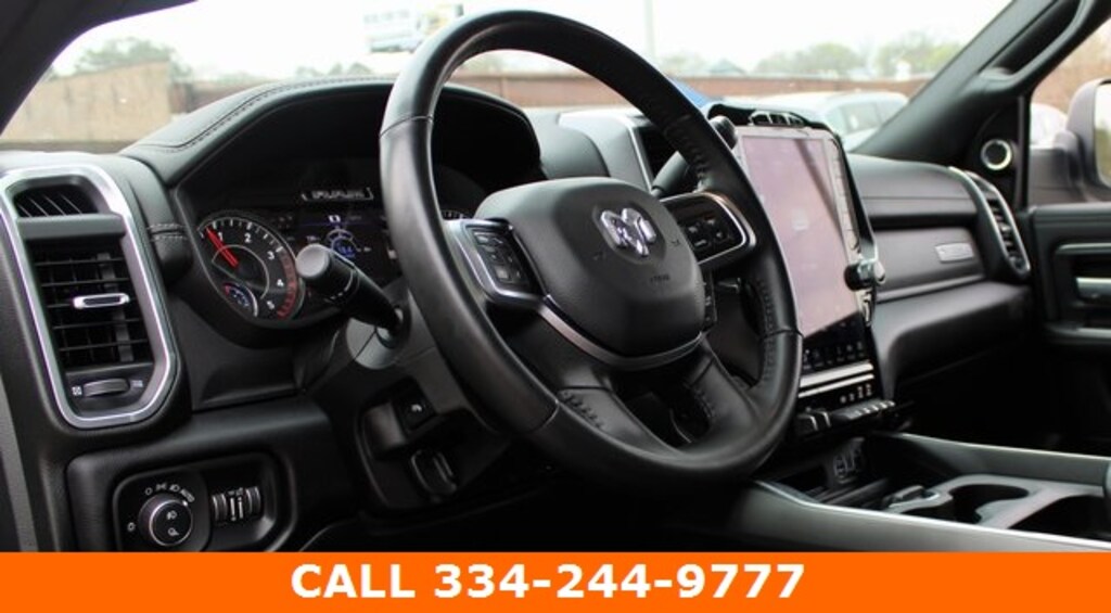 #1 Seat Foam Cushion, 10 Speakers, 115V Auxiliary Rear Power Outlet, 12" Touchscreen Display, 17 Speaker harman kardon Premium Sound, 2 Way Rear Headrest Seat, 220 Amp Alternator, 3.73 Axle Ratio, 4 Way Front Headrests, 4-Wheel Disc Brakes, 4G LTE Wi-Fi Hot Spot, 5th Wheel/Gooseneck Towing Prep Group, 8.4" Touchscreen Display, ABS brakes, Active Noise Control System, Adjustable pedals, Air Conditioning, Alexa Built-In, All R1 High Radios, All Radio Equipped Vehicles, Alloy wheels, AM/FM radio: SiriusXM, Apple CarPlay, Apple CarPlay/Android Auto, Auto High Beam Headlamp Control, Auto-dimming Rear-View mirror, Automatic temperature control, Bed Utility Group, Black Exterior Mirrors, Black Exterior Truck Badging, Black Headlamp Bezels, Black Interior Accents, Black RAM Head Tailgate Badge, Black Tail Lamp Bezels, Black Wheel Center Hub, Body Color Door Handles, Body Color Grille Surround, Brake assist, Bumpers: chrome, Center Hub, Chrome Exterior Mirrors, Compass, Connected Travel & Traffic Services, Connectivity - US/Canada, Delay-off headlights, Disassociated Touchscreen Display, Driver door bin, Driver vanity mirror, Dual front impact airbags, Dual front side impact airbags, Electronic Stability Control, Electronically Controlled Throttle, Exterior Mirrors Courtesy Lamps, Exterior Mirrors w/Heating Element, Exterior Mirrors w/Memory, Exterior Mirrors w/Supplemental Signals, Foam Bottle Insert (Door Trim Panel), For Details, Visit DriveUconnect.com, For More Info, Call 800-643-2112, Front anti-roll bar, Front Center Armrest w/Storage, Front dual zone A/C, Front fog lights, Front License Plate Bracket, Front reading lights, Front Seat Back Map Pockets, Fully automatic headlights, Garage door transmitter, Global Telematics Box Module (TBM), Gloss Black Grille Billets/Accents, Google Android Auto, GPS Antenna Input, GPS Navigation, HD Radio, Heated door mirrors, Heated Front Seats, Heated front seats, Heated Second Row Seats, Heated Steering Wheel, Heated steering wheel, High Back Seats, Illuminated entry, Integrated Center Stack Radio, Integrated Voice Command w/Bluetooth, Laramie Level B Equipment Group (DISC), Leather steering wheel, Leather Trim 40/20/40 Bench Seat, LED Bed Lighting, Low tire pressure warning, Mirror Running Lights, Mirror-Mounted Aux Reverse Lamps, MOPAR Deployable Bed Step, MOPAR Spray In Bedliner, Night Edition, Occupant sensing airbag, Off-Road Information Pages, Outside temperature display, Overhead airbag, Overhead console, Painted Front Bumper, Painted Rear Bumper, Panic alarm, ParkView Rear Back-Up Camera, Passenger door bin, Passenger vanity mirror, Power 2-Way Driver Lumbar Adjust, Power 2-Way Passenger Lumbar Adjust, Power Adjust 8-Way Driver Seat, Power Adjust 8-Way Front Passenger Seat, Power Adjustable Convex Aux Mirrors, Power Adjustable Pedals w/Memory, Power Deployable Running Boards, Power door mirrors, Power driver seat, Power passenger seat, Power steering, Power Sunroof, Power windows, Power-Folding Mirrors, Pwr Convenience Black Tow Mirrors w/Spotter & Memory, Pwr Convenience Chrome Tow Mirrors w/Spotter & Memory, Quick Order Package 2HH Laramie, Radio data system, Radio: Uconnect 5 Nav w/12.0" Display, Radio: Uconnect 5 Nav w/8.4" Display, Radio: Uconnect 5 w/8.4" Display, Radio/Driver Seat/Mirrors/Pedals Memory, Rain Sensitive Windshield Wipers, Rear 60/40 Folding Seat, Rear anti-roll bar, Rear reading lights, Rear seat center armrest, Rear step bumper, Rear window defroster, Remote keyless entry, Remote Tailgate Release, Security system, Selectable Tire Fill Alert, SiriusXM Radio Service, SiriusXM w/360L, Speed control, Split folding rear seat, Steering wheel mounted audio controls, Tachometer, Tilt steering wheel, Tip Start, Tow Hooks, Traction control, Trailer Tow Mirrors, Tri-Fold Tonneau Cover, Trip computer, Turn signal indicator mirrors, Variably intermittent wipers, Vendor Painted Cargo Box, Vendor Painted Cargo Box Tracking, Voltmeter, Wheels: 18" x 8.0" Polished Aluminum, Whee